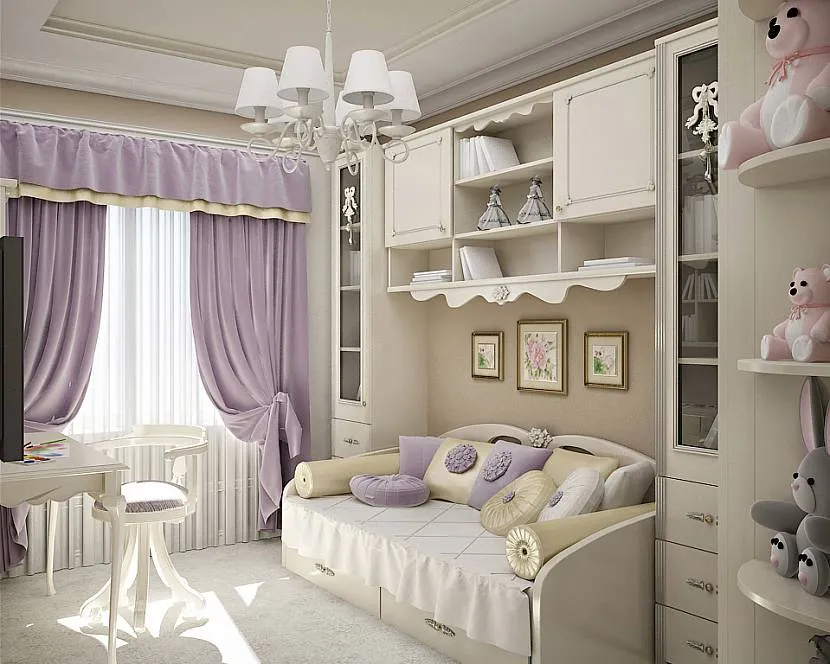Если в комнате будет жить один ребенок, приобретите раскладную диван-кровать. Она занимает меньше места, чем обычная кровать. Производители детской мебели предлагают диваны, которые в сложенном виде вдвое меньше по длине, имеют нишу для постельного белья.