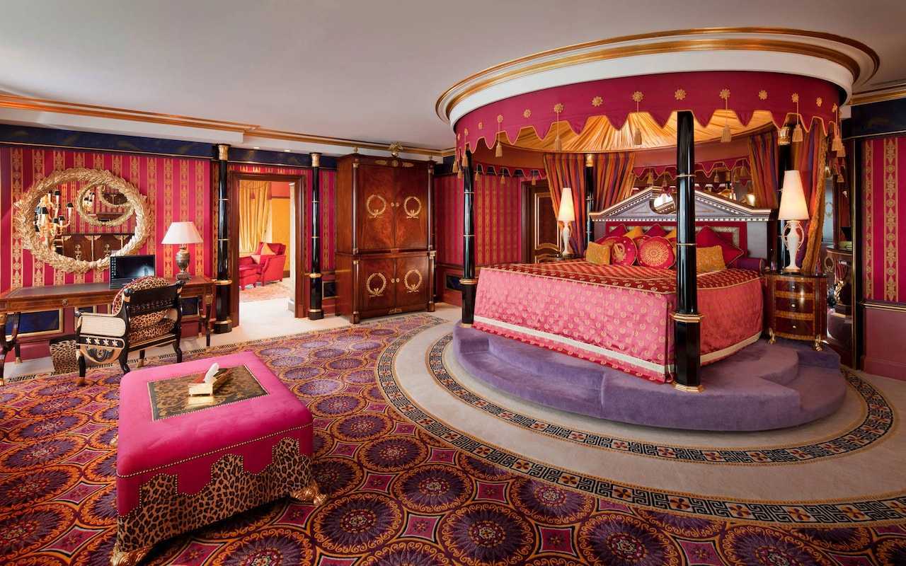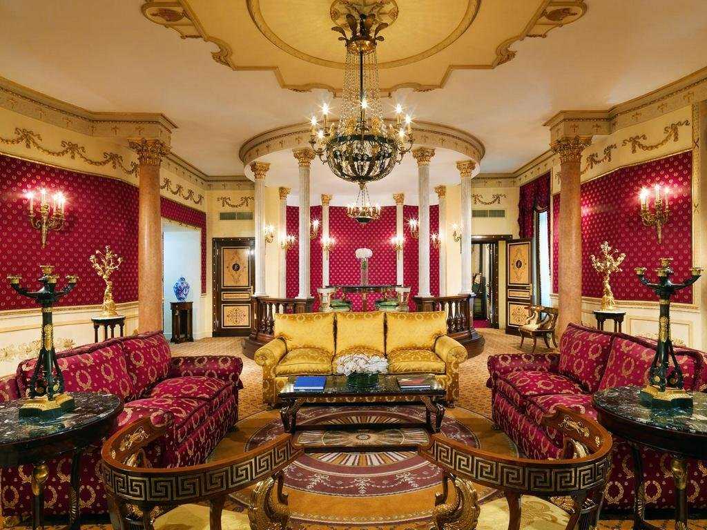 Этот отель настолько известен и проверен временем, что желающих остановиться пусть даже в супердорогих номерах, всегда предостаточно. Сразу стоит сказать, что площадь этого эксклюзивного номера 924 кв.м! Сама роскошь – второе имя королевских апартаментов. Три спальни – каждая с ванной комнатой, где отдельно стоят ванная и душевая кабина, гостевая туалетная комната, столовая с позолоченным обеденным столом, рассчитанным на 16 человек.