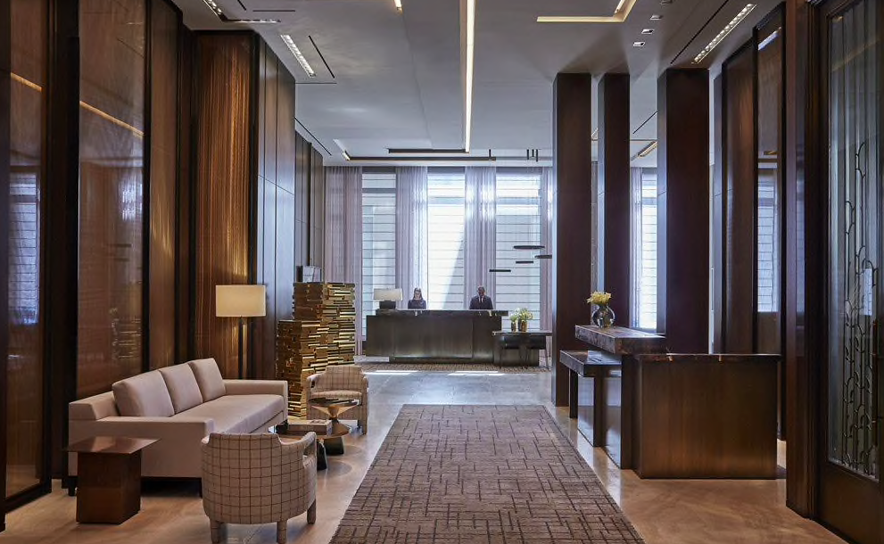 Дизайн люкса невероятно элегантный, но в то же время сдержанный – соответствует общему стилю Four Seasons. Из люкса открывается круговой обзор местности, а с 200-метровой высоты в этом городе есть на что полюбоваться! В пентхаусе есть инкрустированный шкаф, стоящий почти миллион долларов и панорамная ванна. В номер ведёт персональный лифт, а арендатор пентхауса может неограниченно пользоваться «Роллс-Ройсом».