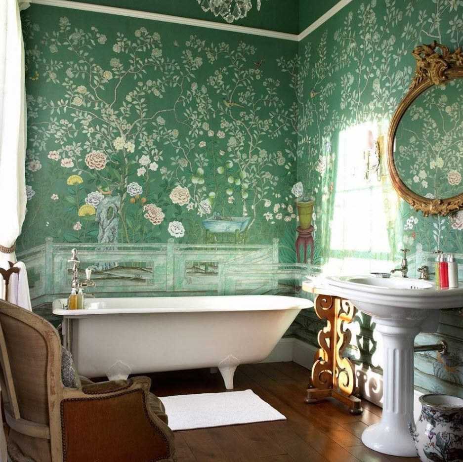 Роскошная ванная в классическом стиле с гармоничным союзом панелей и обоев
