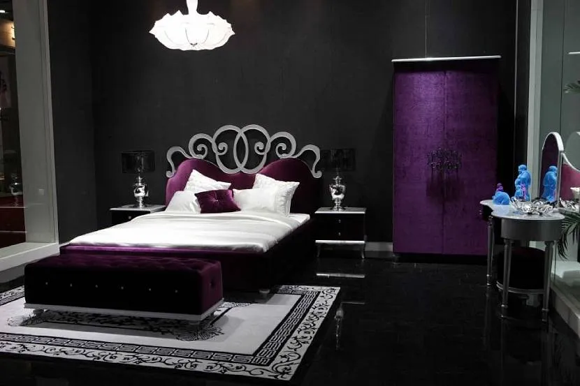 Черно-фиолетовый интерьер с бархатной мебельюИсточник pinterest.ru