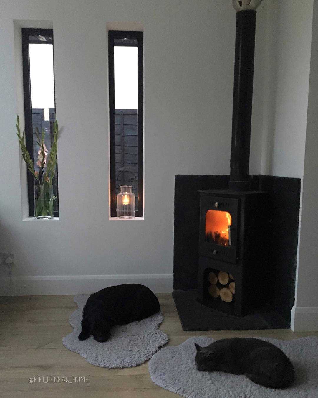 Теплым оранжевым пятном станет огонь в камине.