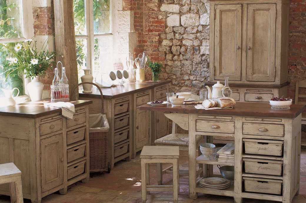 Искусственно состаренная мебель идеально подойдет для кухни в стиле прованс