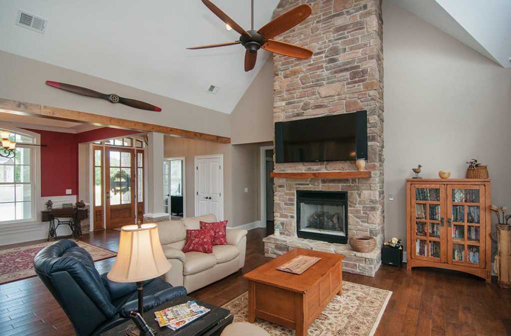 Комбинация камня и дерева в интерьере кухни-гостиной