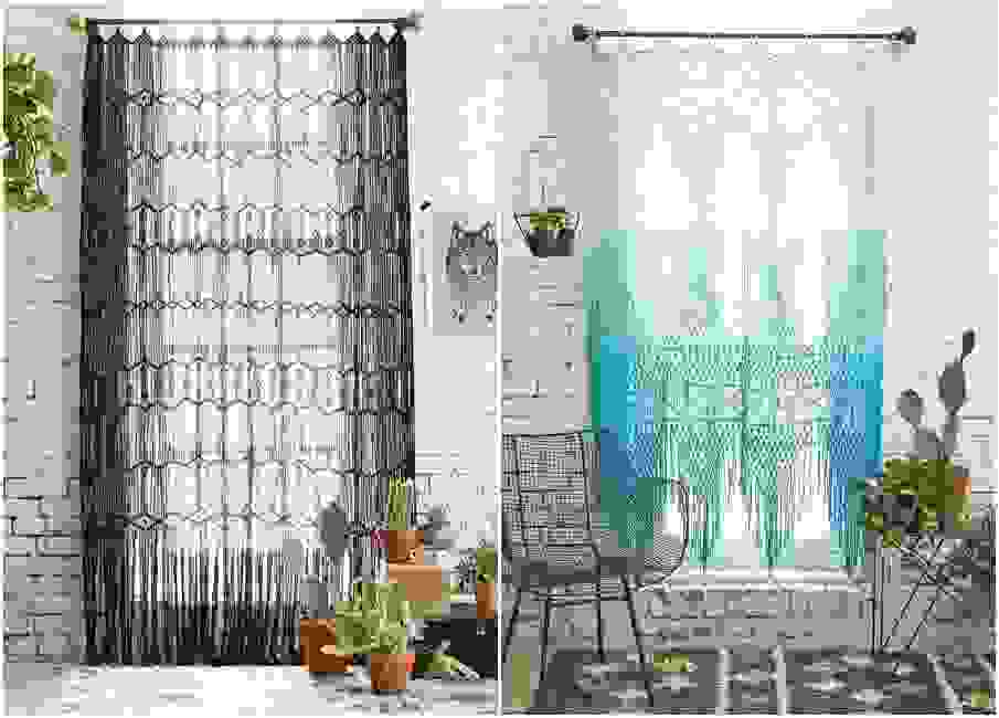 Если вы до сих пор ломаете голову, как украсить оконный или дверной проём, советуем обратить внимание на шторы и занавеси из макраме. Их можно использовать как самостоятельный элемент, а можно комбинировать с другими материалами, например, тюлем или органзой