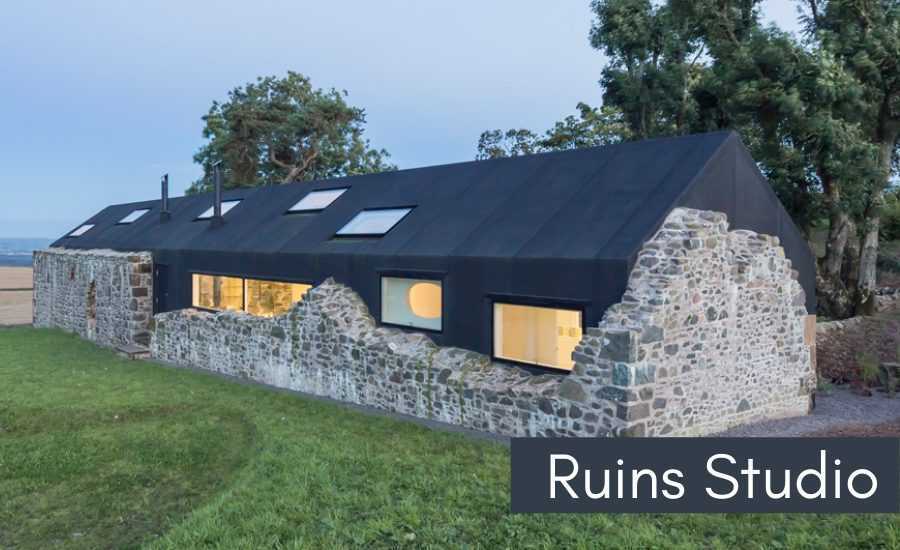 Ruins Studio в Шотландии — это частный дом, созданный на каменных руинах старого фермерского дома. Первоначальный камень сохранили, и теперь используется как натуральная фактурная оболочка. Он резко контрастирует по сравнению с более современным дизайном интерьера. Внутри вы почувствуете себя в пещере благодаря смотровым отверстиям, пропускающим естественный свет, и каменным акцентам, сочетающимися с современными деревянными украшениями.