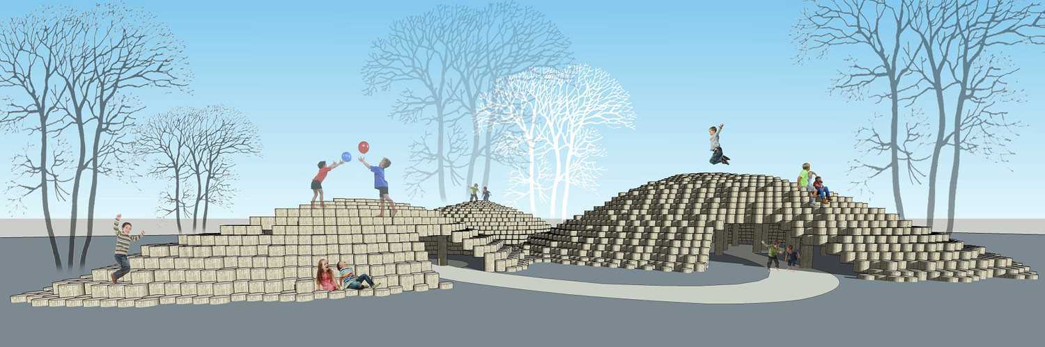 I место: Екатерина Никитина, Санкт-Петербург Многофункциональная игровая площадка для детей разных возрастов, подходящая для игр в любое время года: имеется пространство под навесом, есть сфера для лазания, зимой она превращающаяся в горку. Универсальные бионические абрисы конструкции отлично впишутся в любой городской ландшафт.