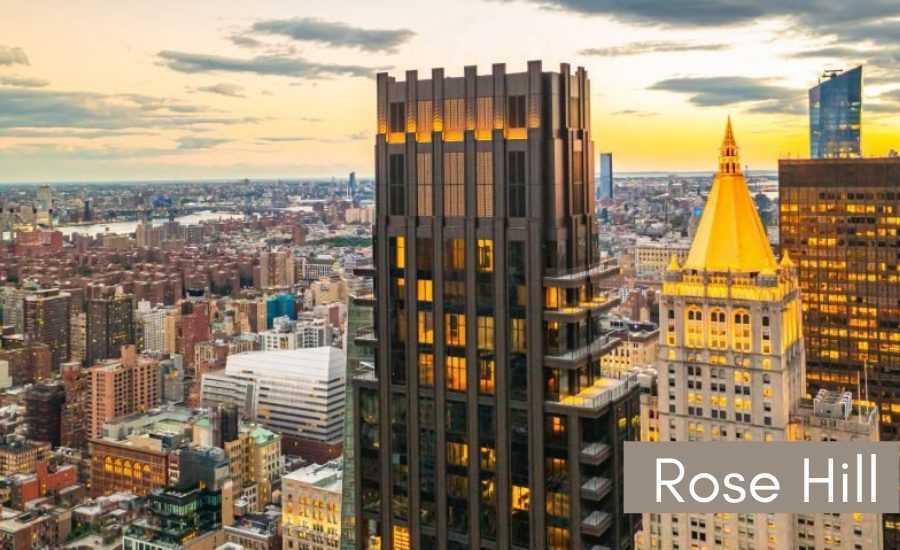 Этот 45-этажный жилой небоскреб бронзового цвета на Манхэттене известен своими «гибкими» квартирами. Эти многоцелевые пространства связаны с гостиной и могут использоваться как библиотеки, комнаты для гостей, детские или зоны для работы на дому. Они бывают разных размеров и могут использоваться как на открытых площадках, так и за закрытыми дверями. Гибкие апартаменты Rose Hill подтверждают растущий спрос на домашние офисы.