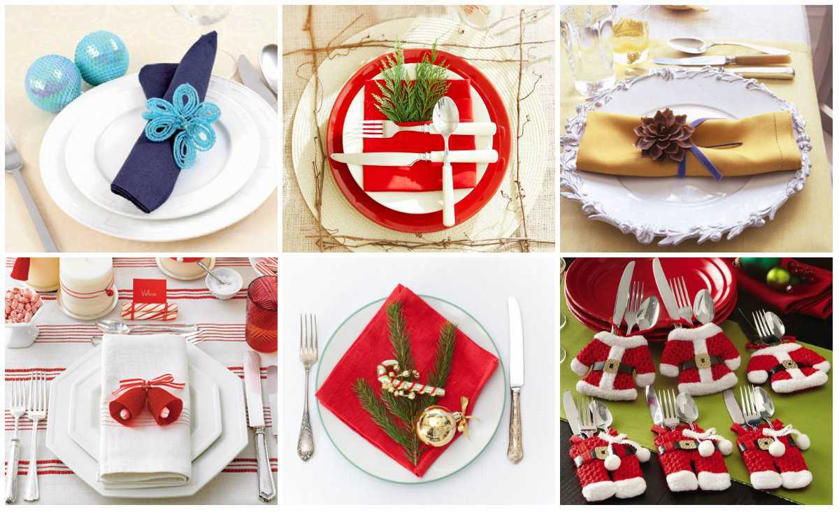 Отличной идеей может стать завернутая салфетка с настоящими еловыми ветками, шарами, бантами, шишками и кольцами, которые можно найти в магазинах.