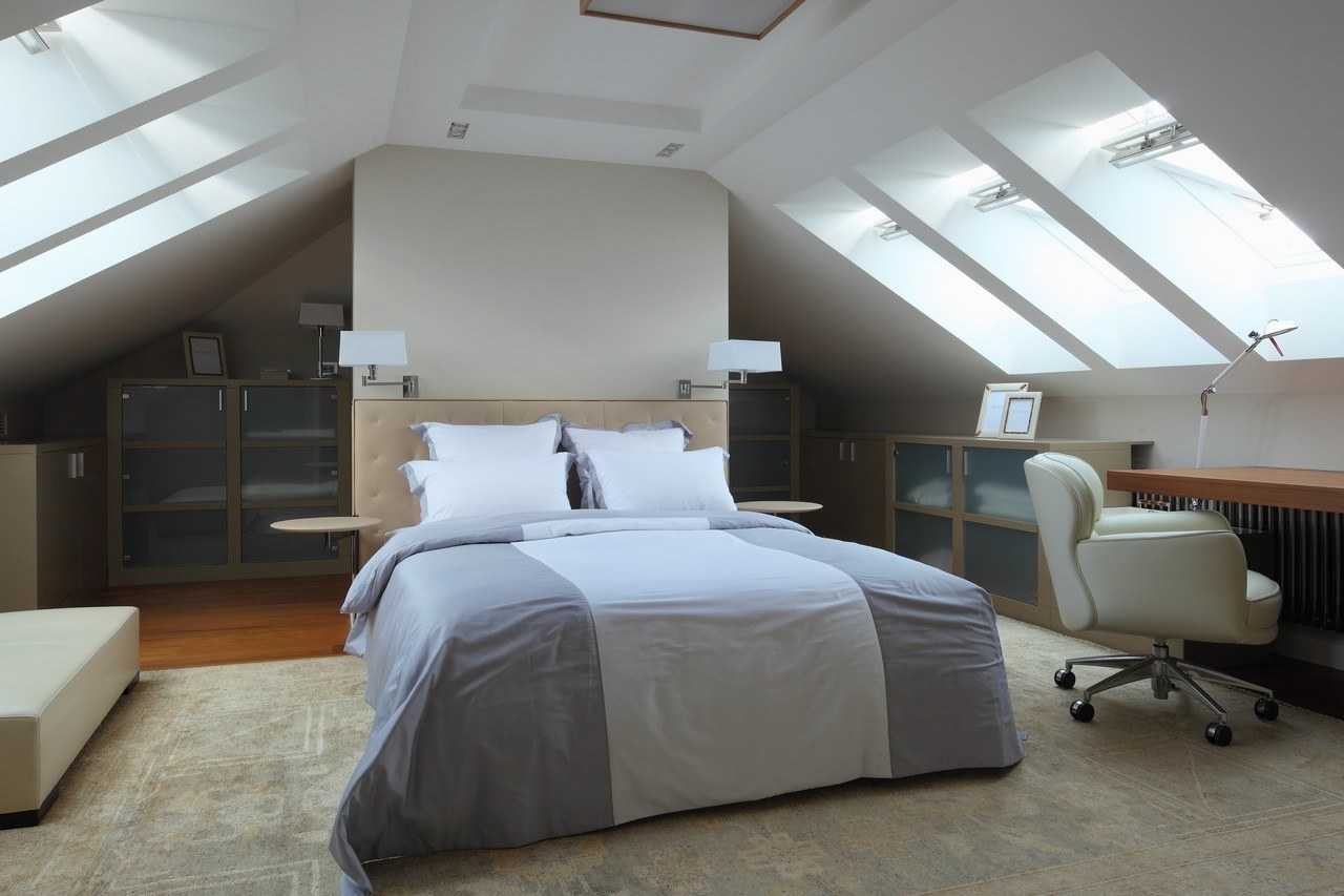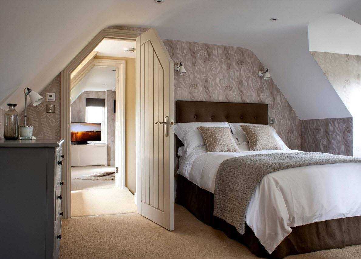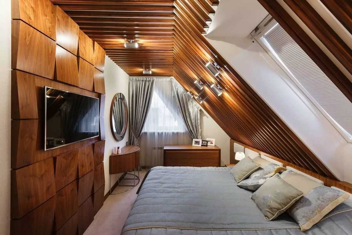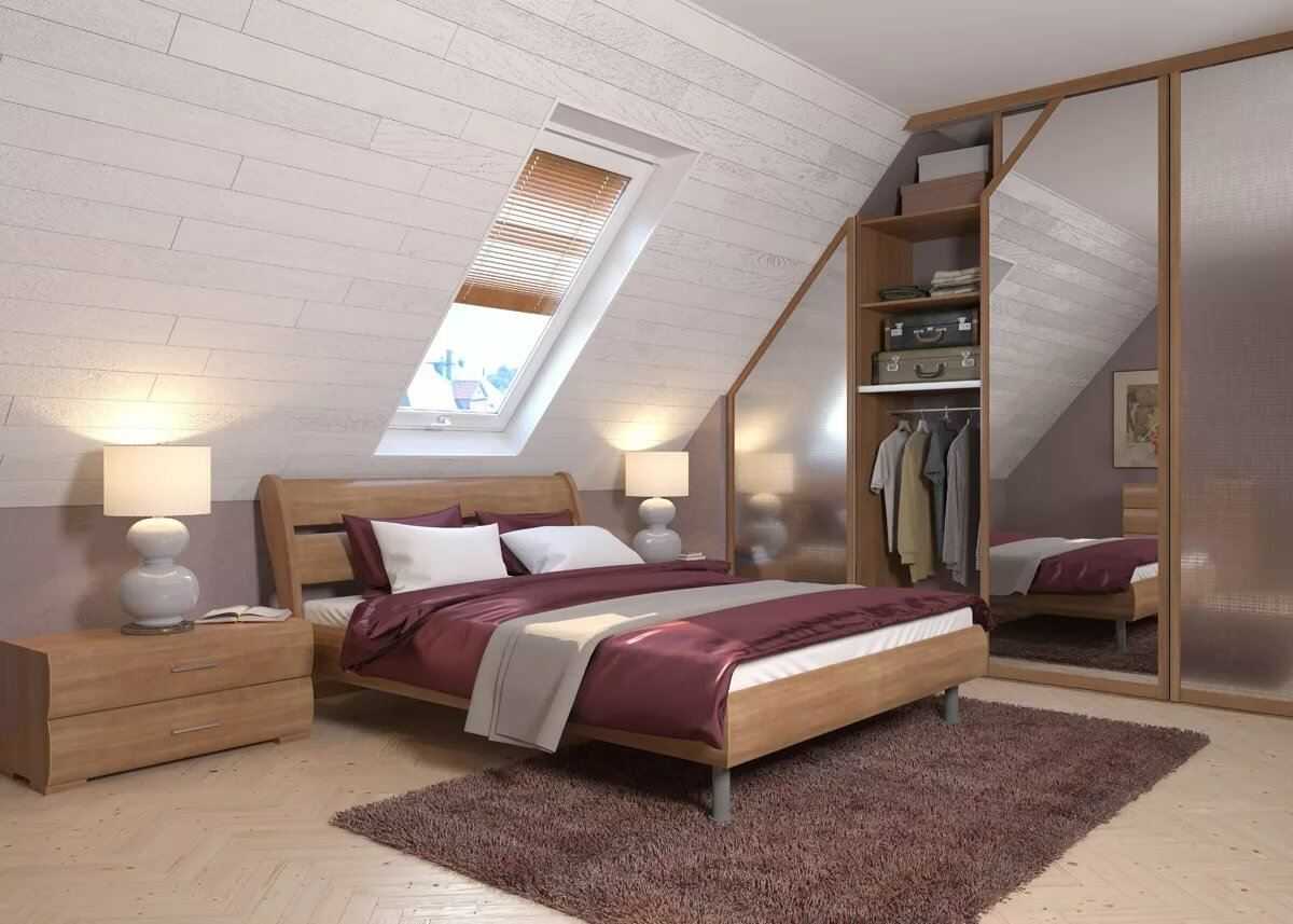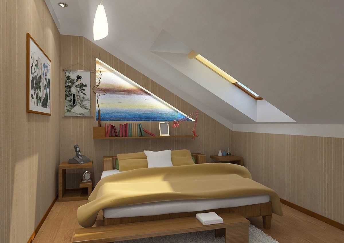 Интерьер спальни мансардного типа: фото стильного дизайна интерьера