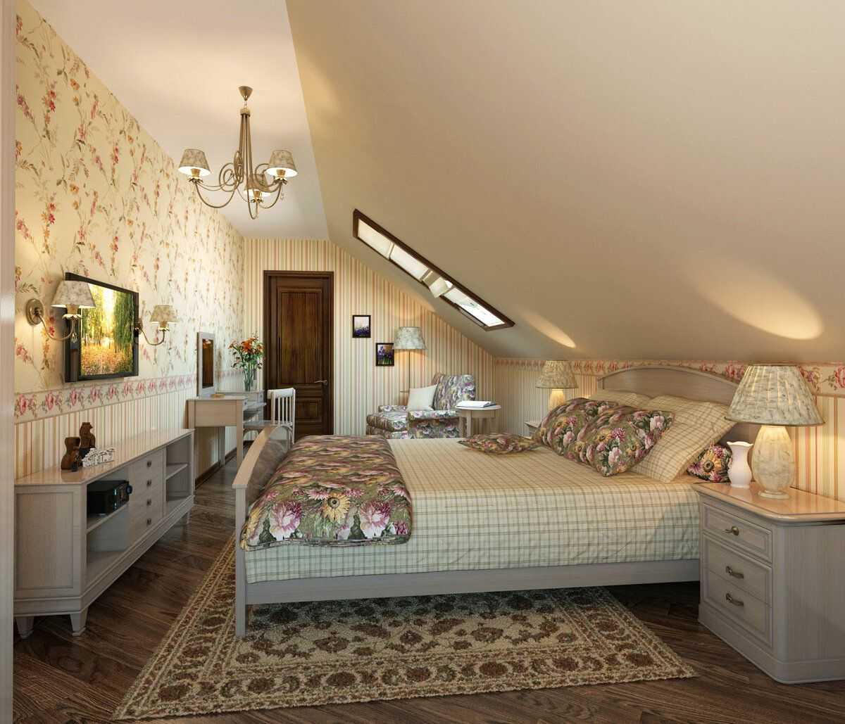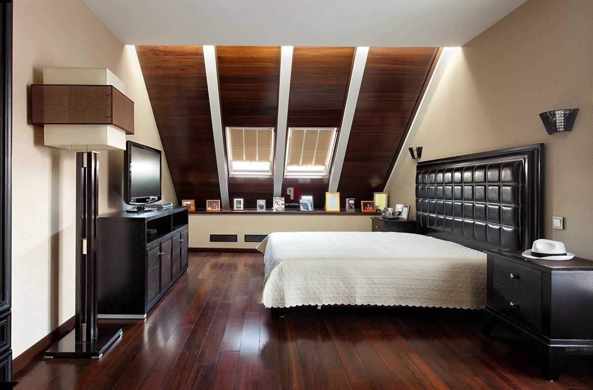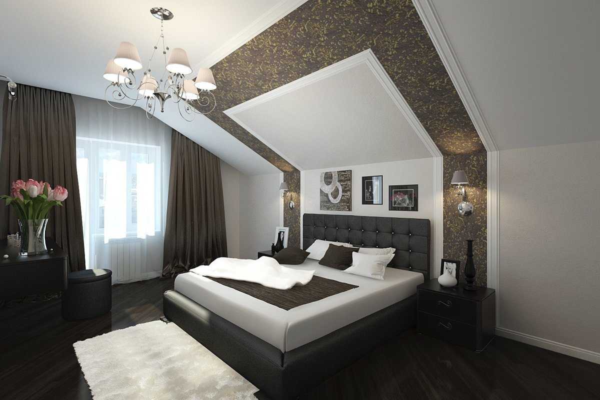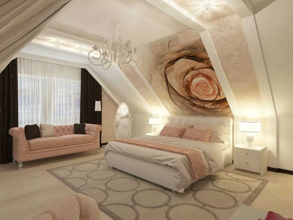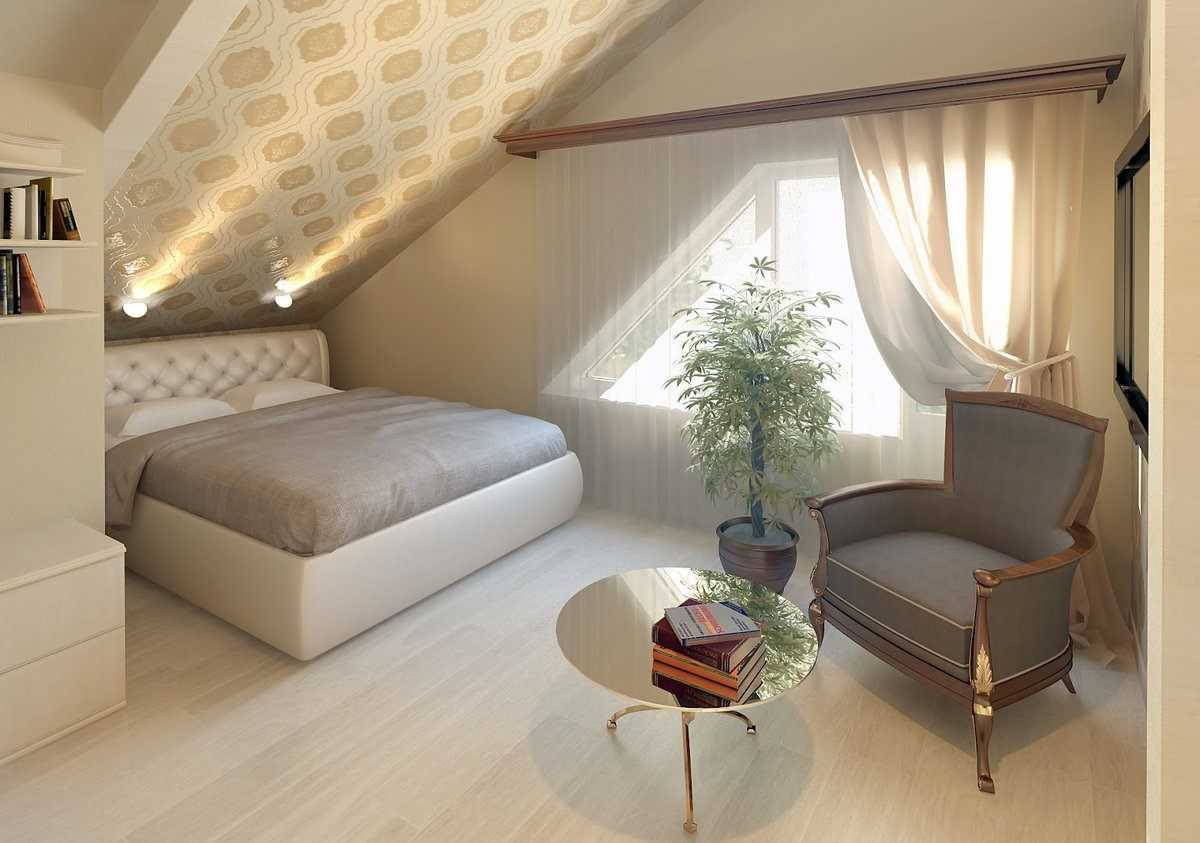 Интерьер спальни мансардного типа: фото стильного дизайна интерьера