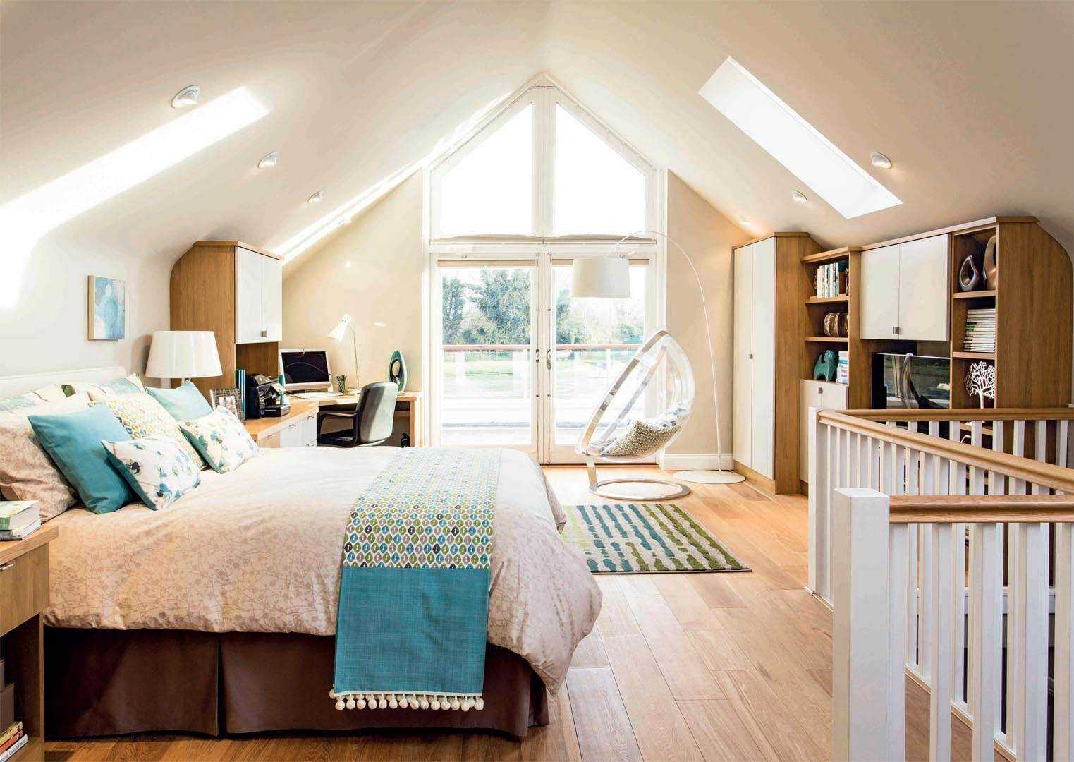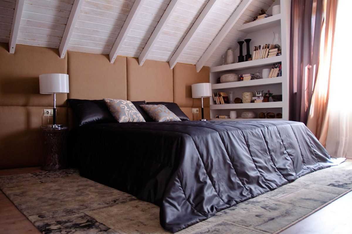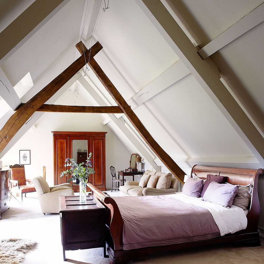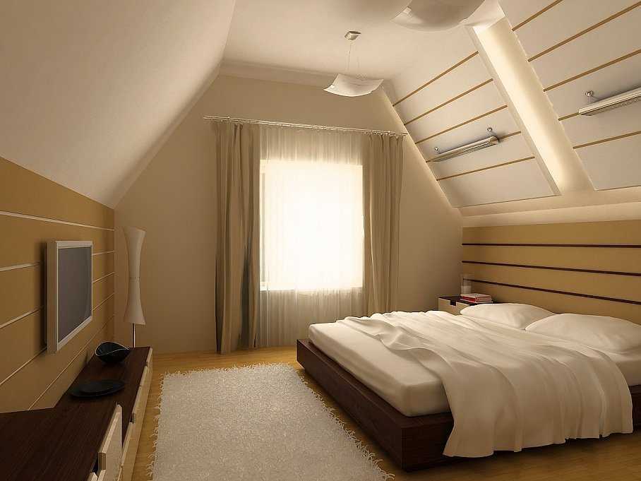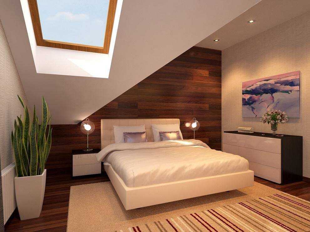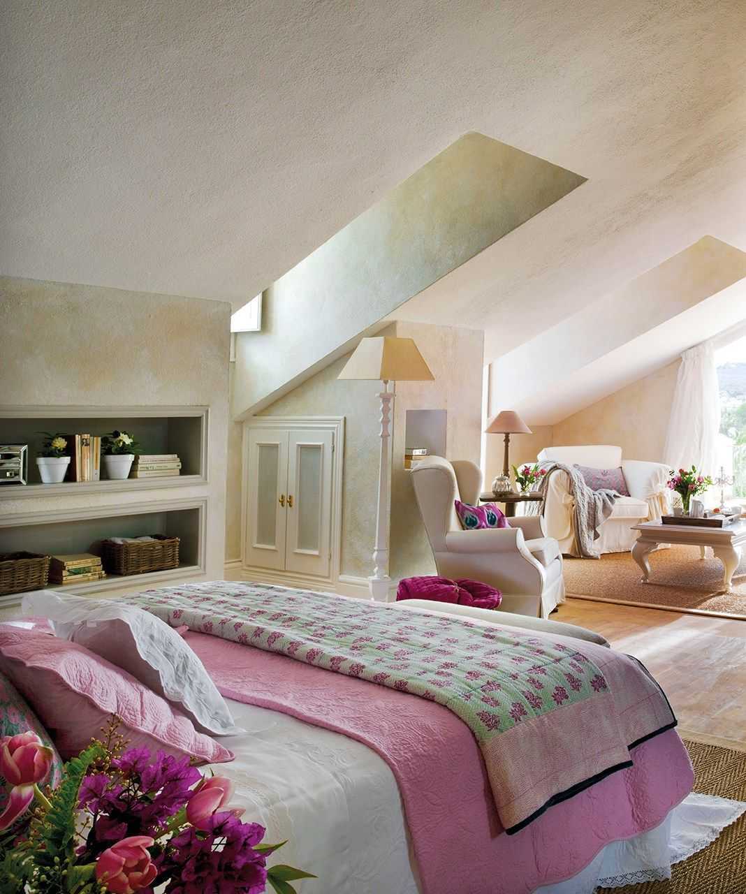 Интерьер спальни мансардного типа: фото стильного дизайна интерьера