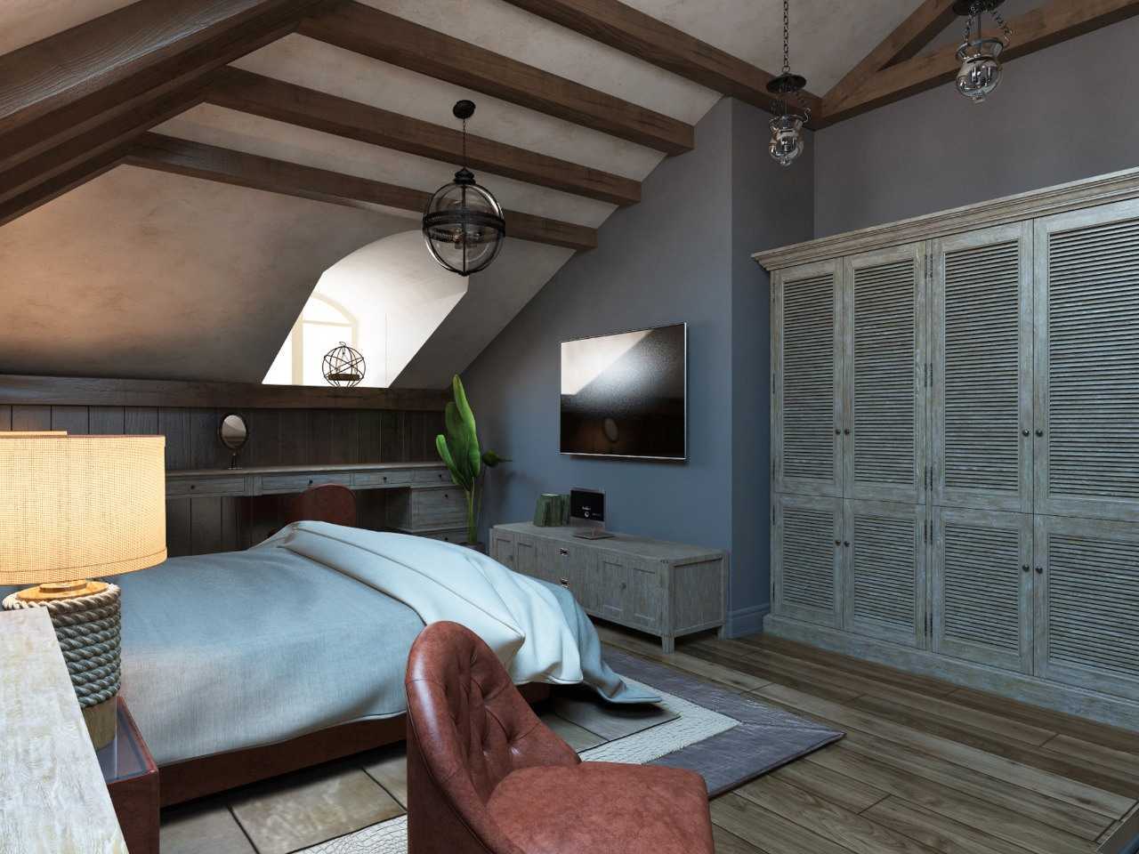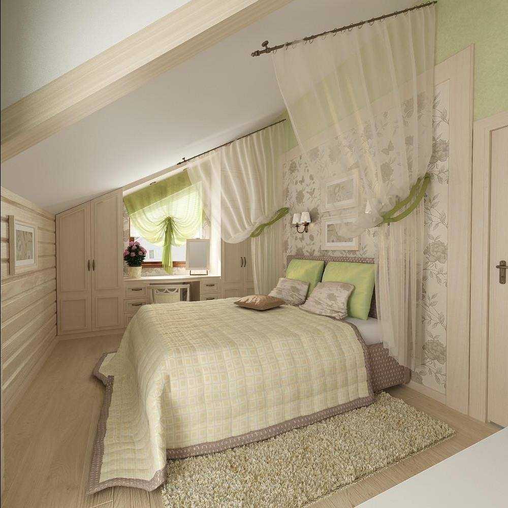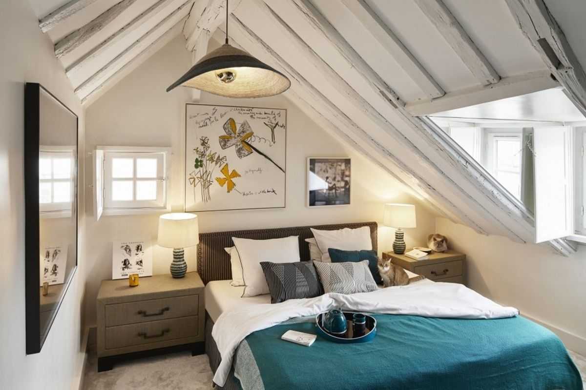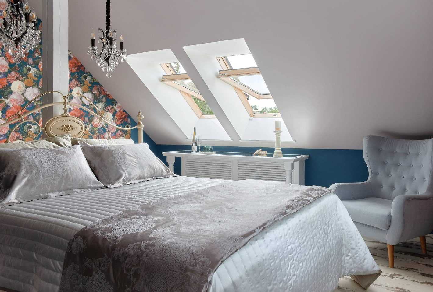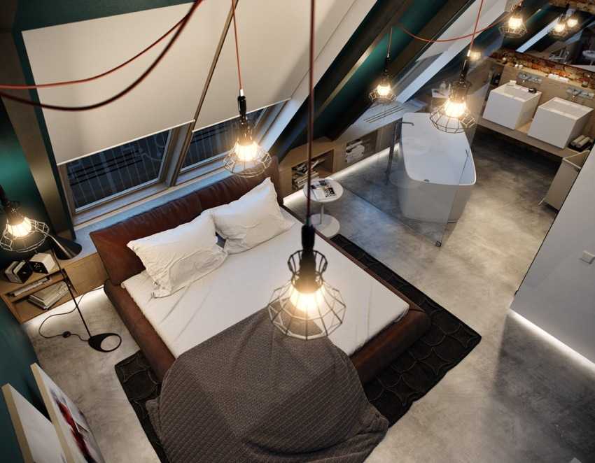 Интерьер спальни мансардного типа: фото стильного дизайна интерьера