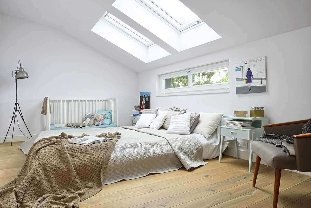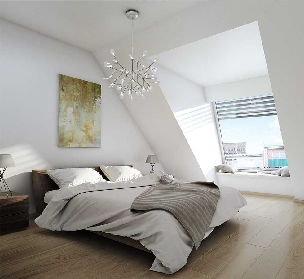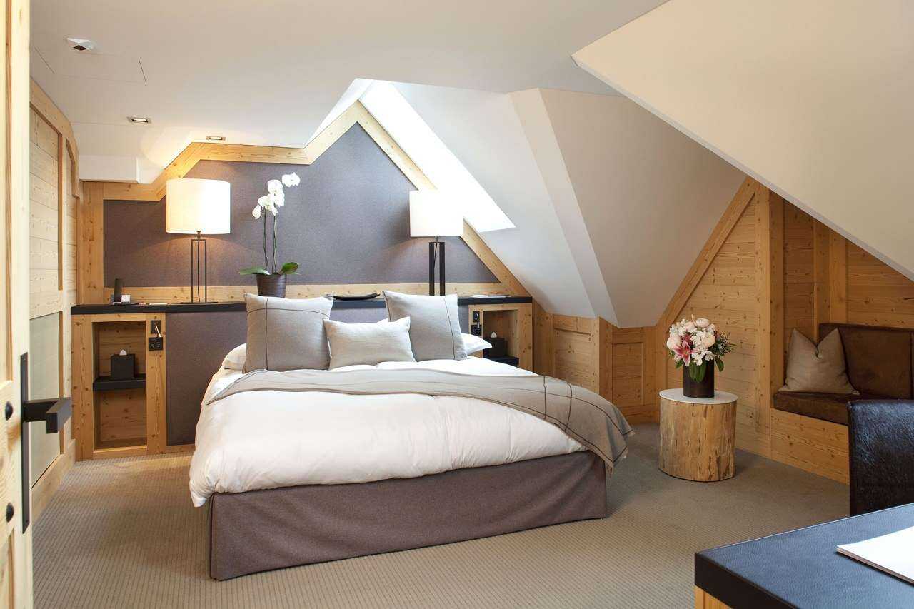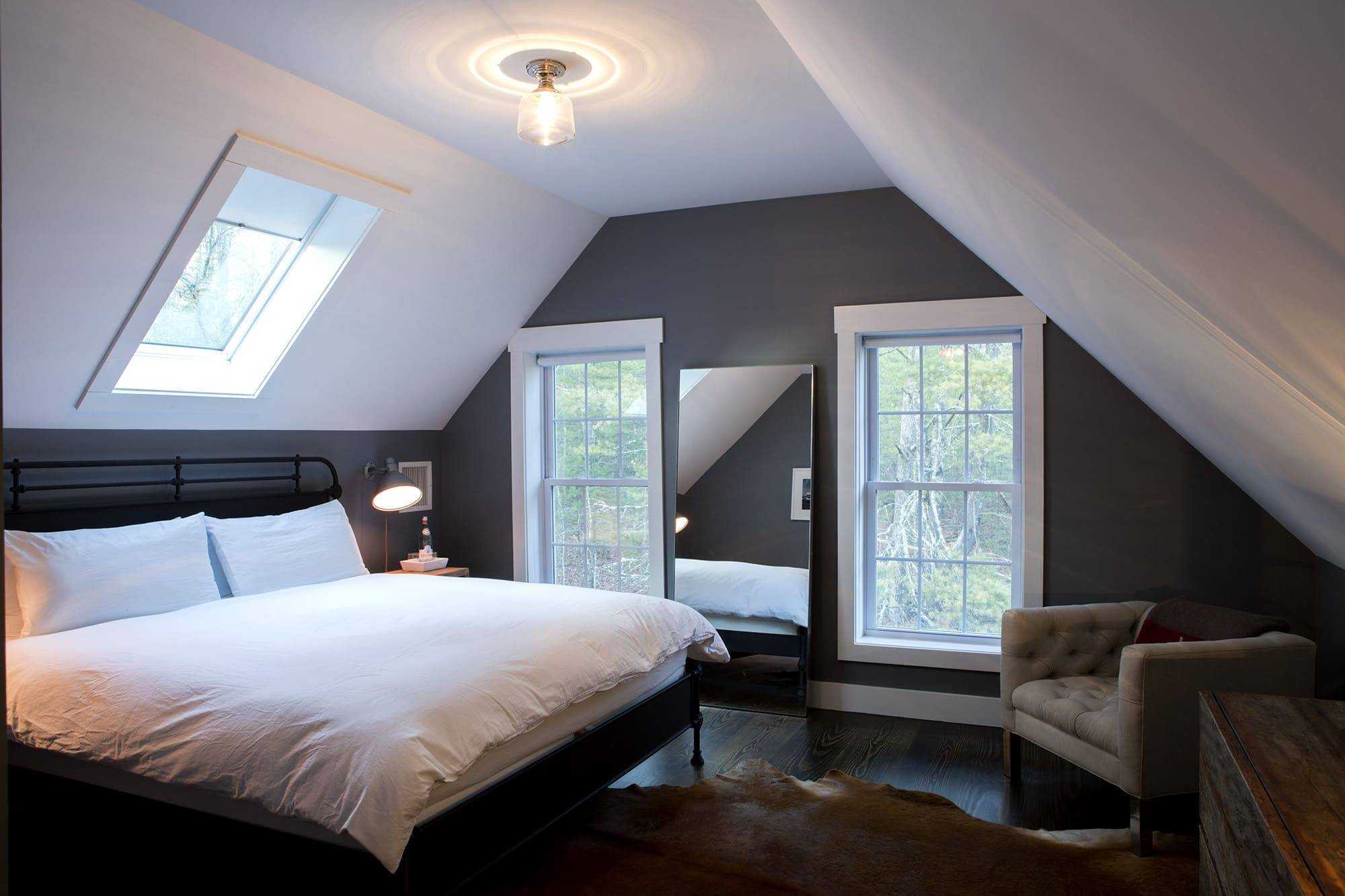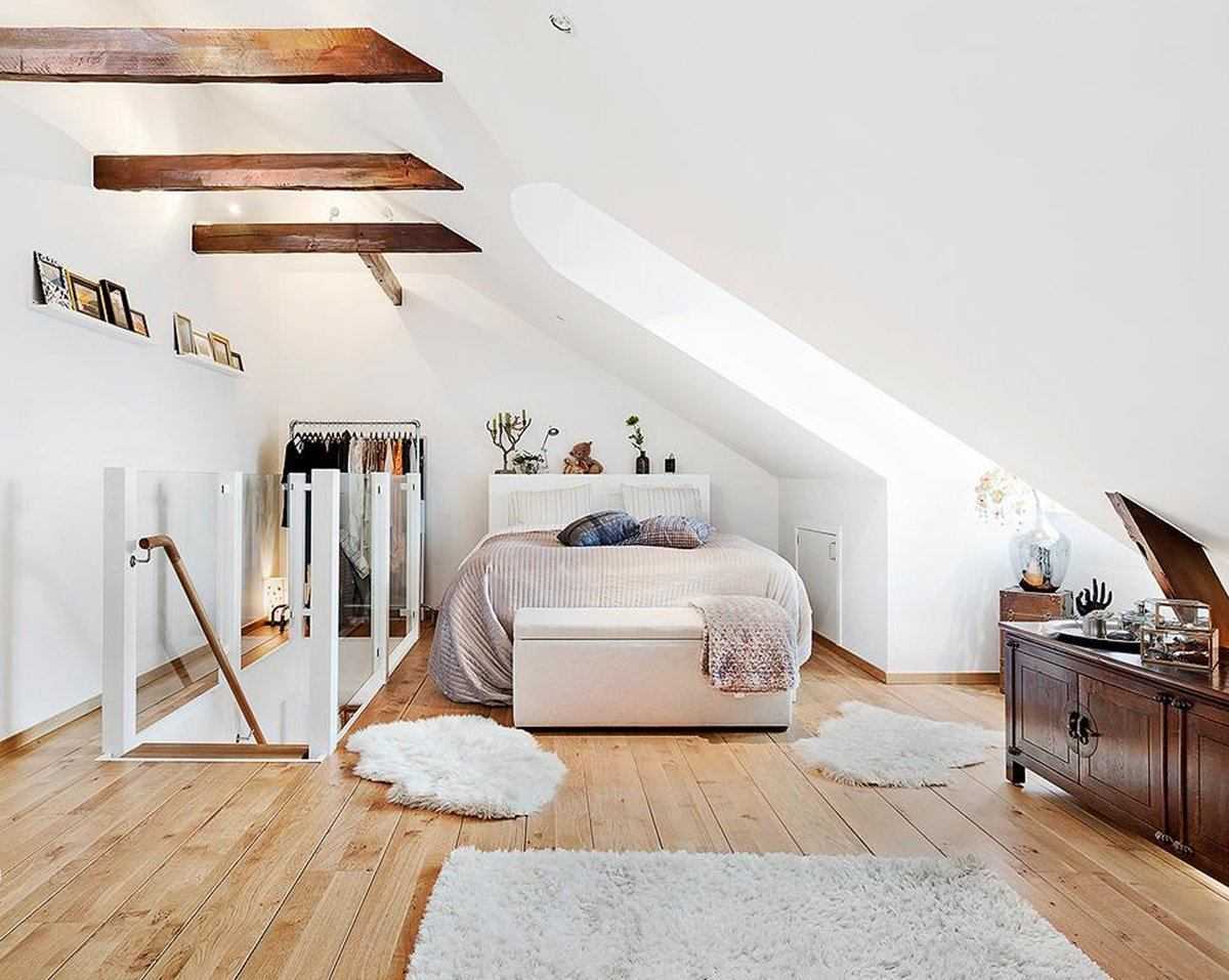 Интерьер спальни мансардного типа: фото стильного дизайна интерьера