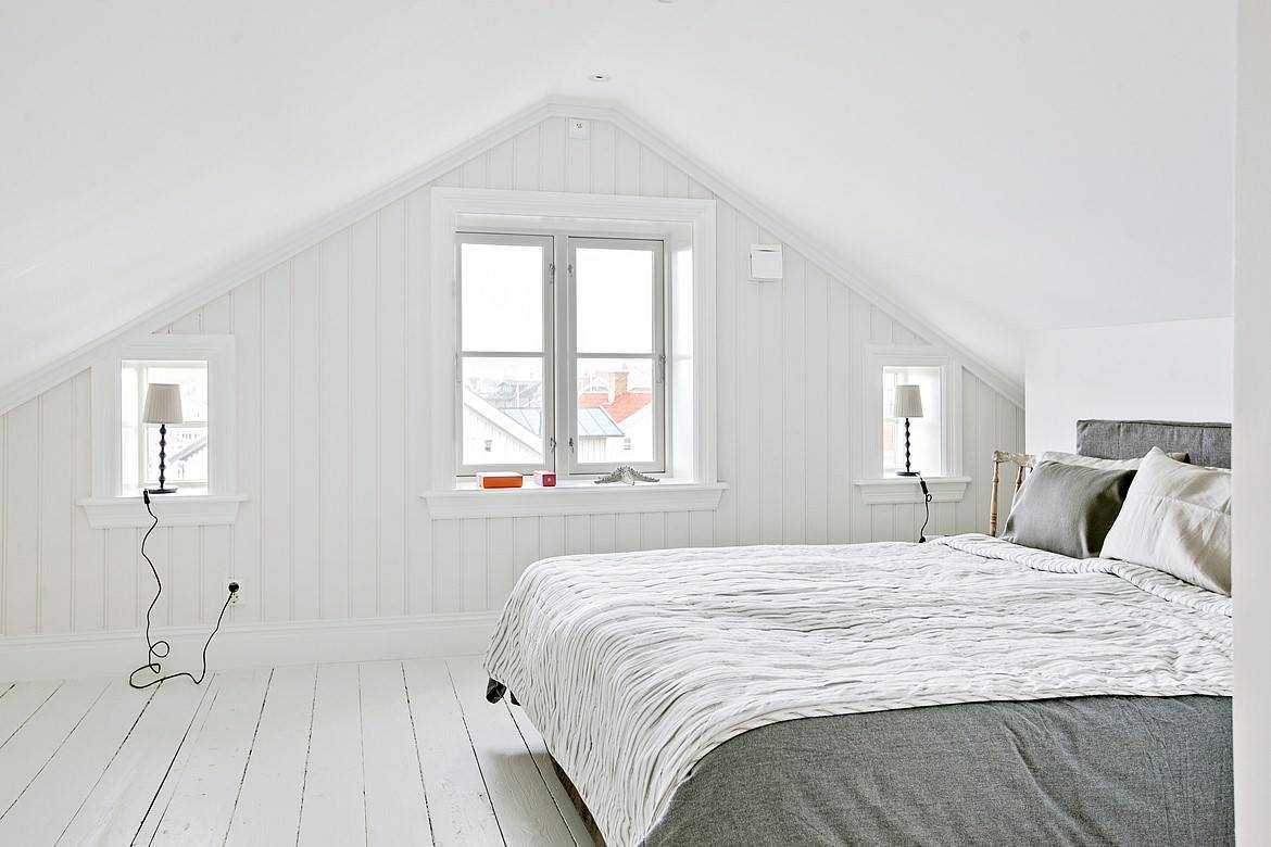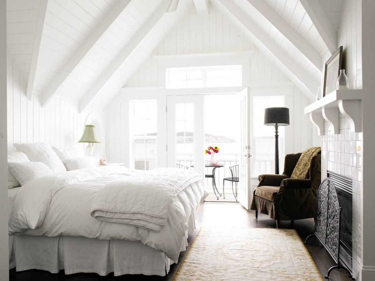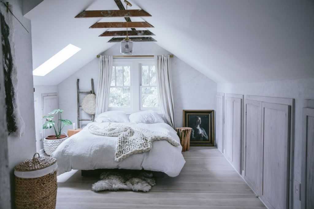 Белый цвет позволяет визуально увеличить пространство маленькой спальни на мансарде