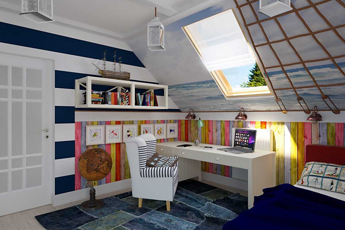 Позаботьтесь, чтобы комната мансарда для мальчика не была чересчур темной, это может вызывать депрессию. Можно не только сделать так много окон, как это у вас получится, но и снабдить помещение дополнительным искусственным освещением.