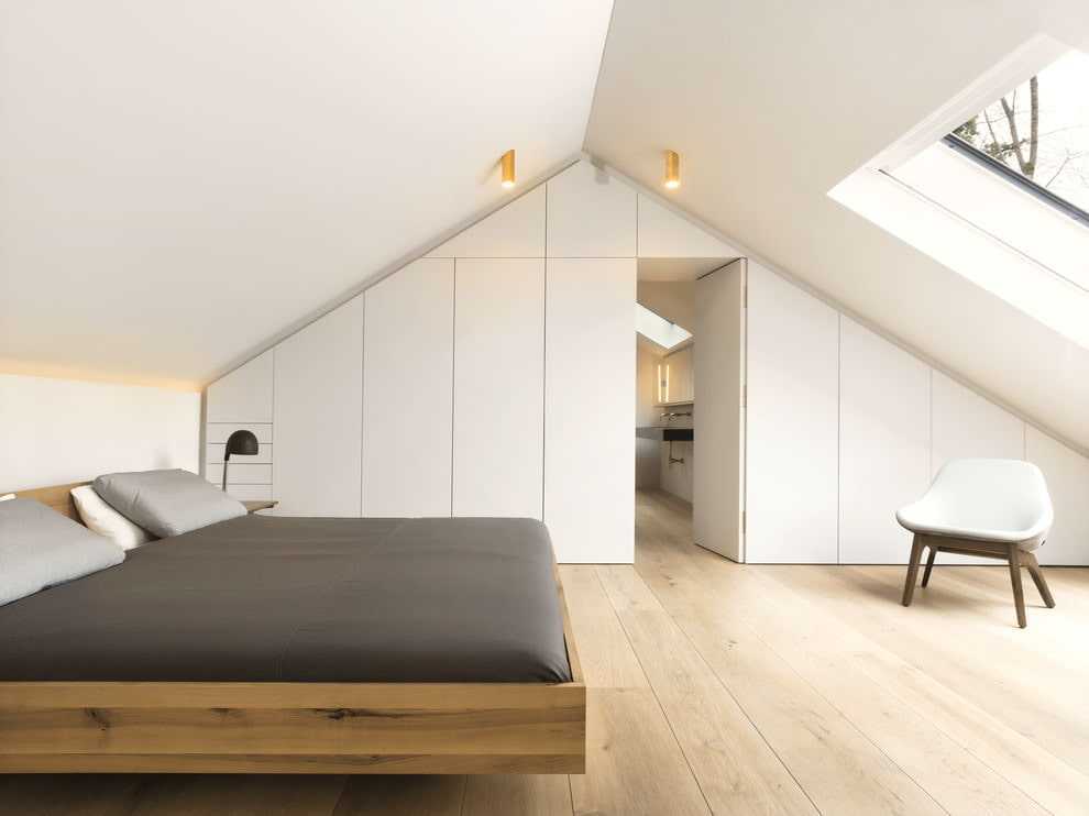 Интересное решение с вещевыми шкафами под скатной крышей помогает сэкономить место
