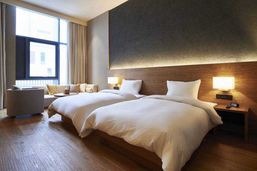 Стены в спальне должны быть отделаны экологичными материалами – штукатурка, ламинат, ткань, обои, краска.