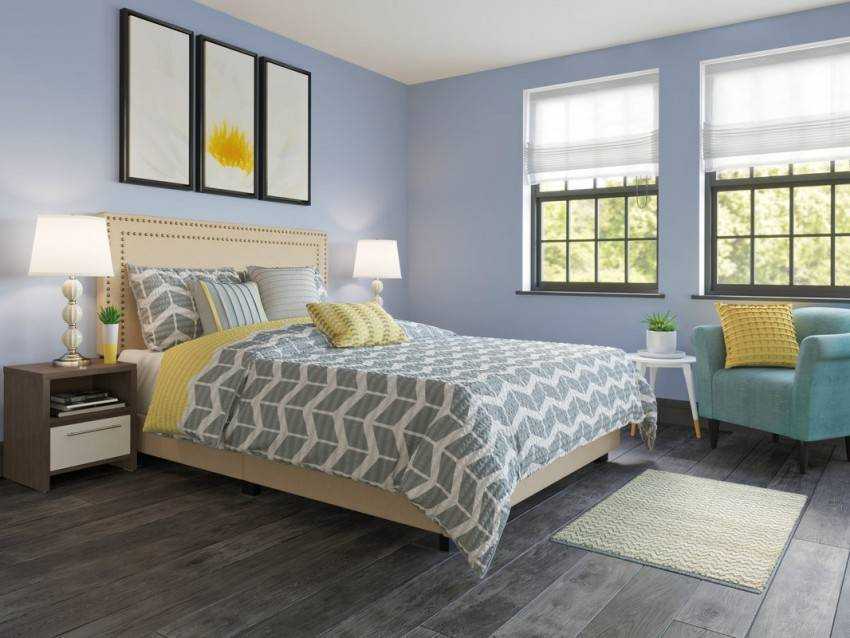 - Личные симпатии. Атмосфера спальни должна помогать человеку расслабится, поэтому следует выбирать расцветку, которая нравится. Главное — не яркая, насыщенная, а более спокойная тональность. Например, если хозяину по душе синий, то рекомендуются бледные оттенки голубого.
