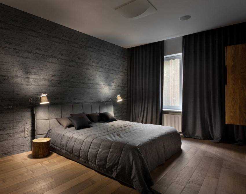 Большие оконные проемы или несколько окон в спальне открывают широкие вариации для подбора цветовой композиции для стен. В этом случае можно поэкспериментировать с темными оттенками: коричневым, графитовым или даже черным.