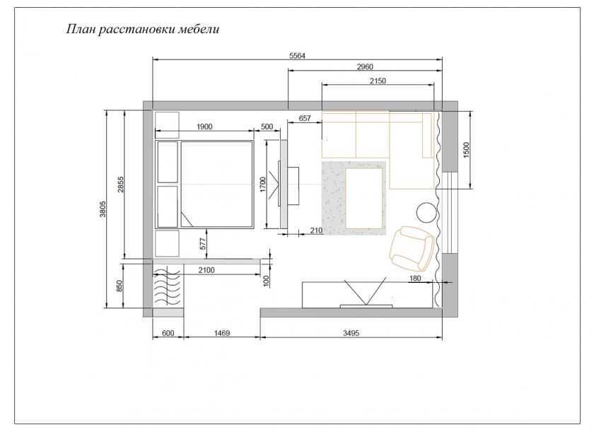 - Продумайте проходы между мебелью: минимальное расстояние 0,5 метра, а лучше 0,75-1 метр.