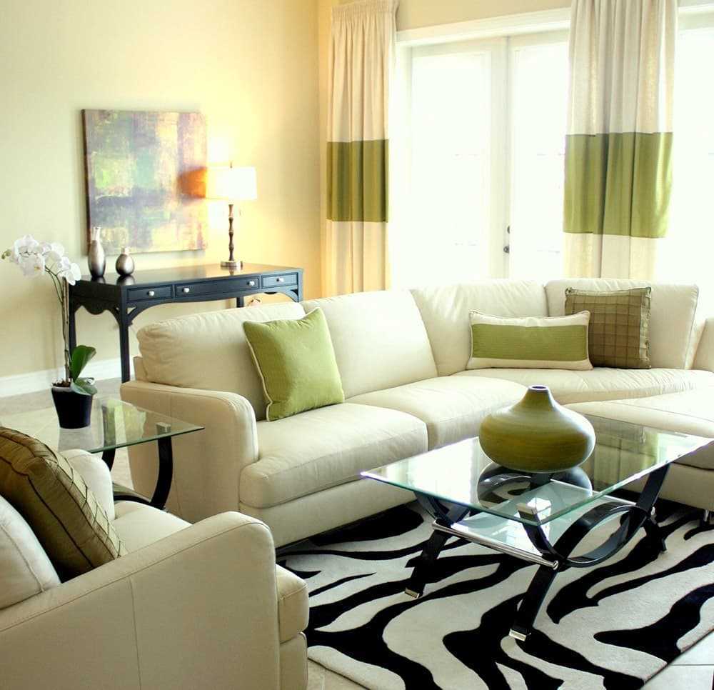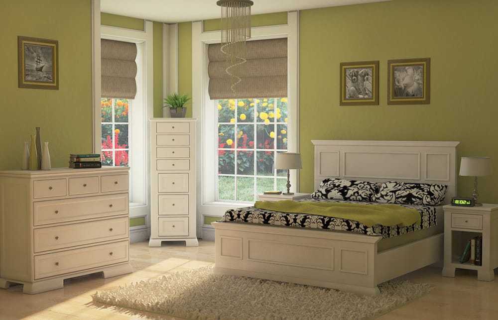 Универсальный белый цвет способен смягчить насыщенность тона и внести в помещение спокойную, приятную атмосферу, наполненную домашним теплом. Для небольших комнат актуально использовать фисташковую мебель и белую отделку.
