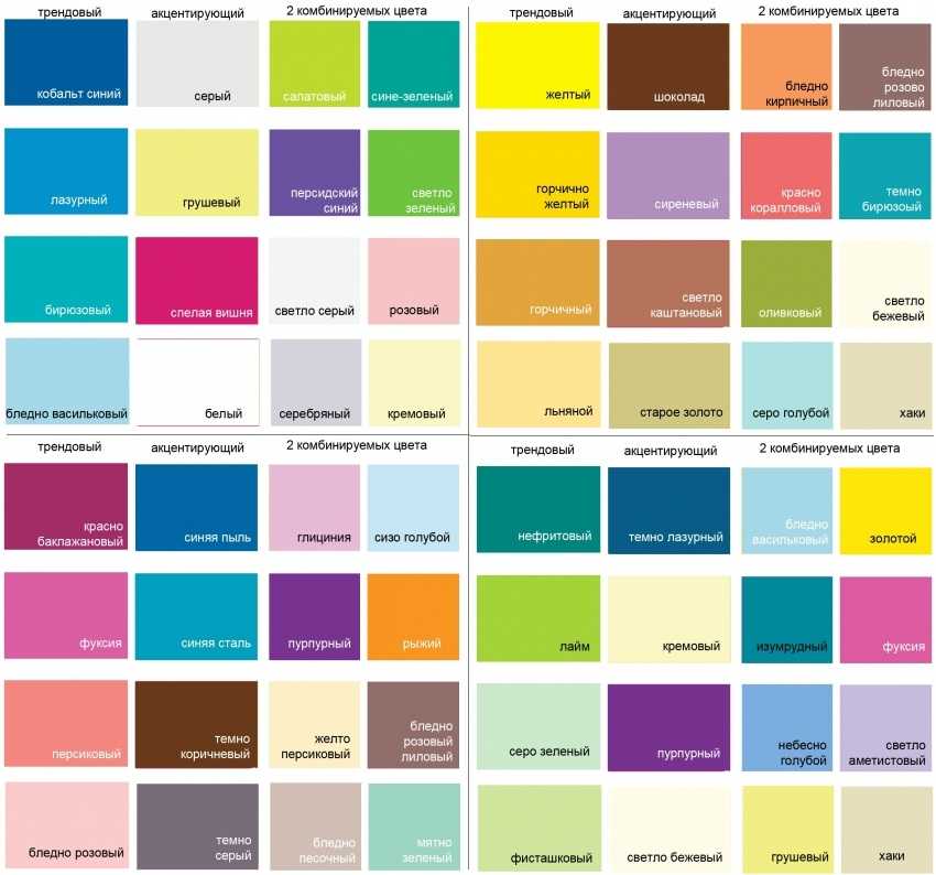 На просторах интернета можно отыскать множество таких таблиц. В нашей статье мы использовали таблицы по сочетанию цветов из книги «Цвет. Энциклопедия (советы по цветовому оформлению вашего дома)» Анны Стармер.