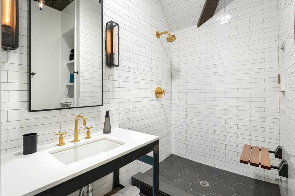 Необычной деталью, которая характеризует американскую ванну – это наличие окна. Причём оно не маленького размера, а полноценного. Его обычно закрывают ролокасетами или ставят жалюзи.
