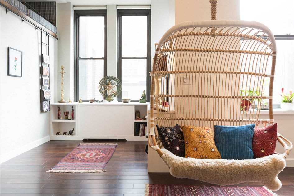 - белый – может служить в качестве основы либо выделения определенных элементов в интерьере. Чаще используют теплые, приятные глазу оттенки белого – молочный, кремовый. Они невероятно колоритно смотрятся в сочетании с расцветкой природных материалов, оттеняют и дополняют их;