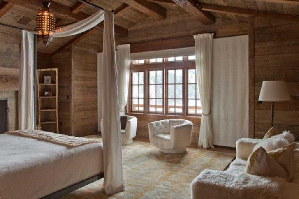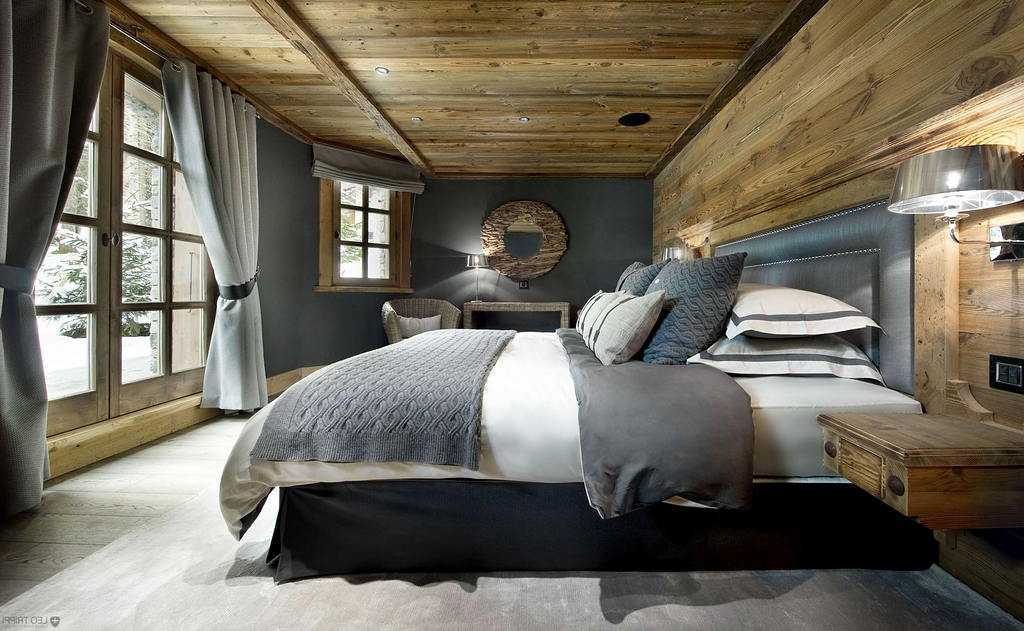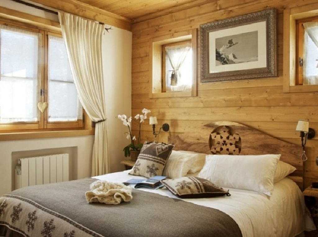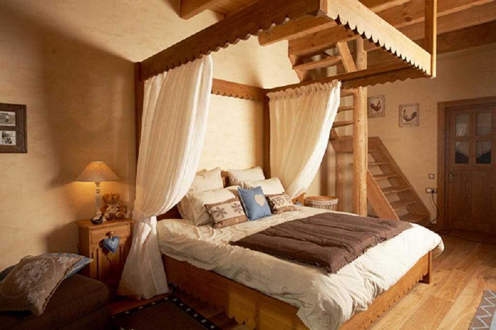 Для спальни в стиле шале характерно применение балдахинов. В кровати, защищенной со всех сторон от сквозняков, тепло и невероятно уютно.