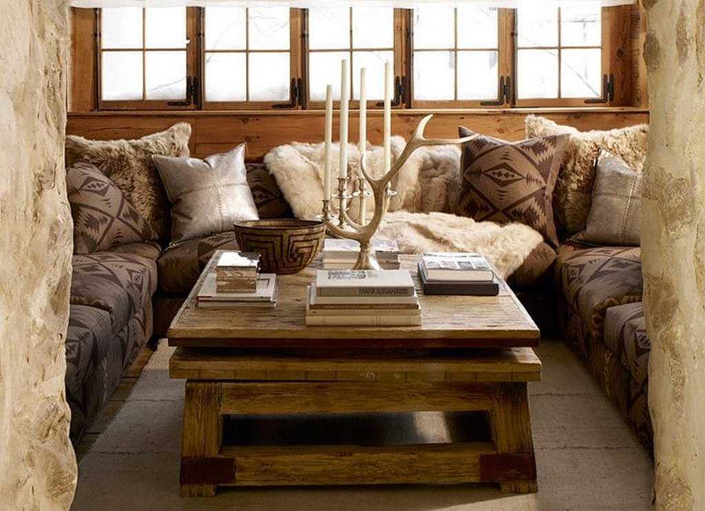 Ковры или шкуры животных на полу и стенах поглощают шум и согревают, приближая обстановку к идеальной для отдыха.