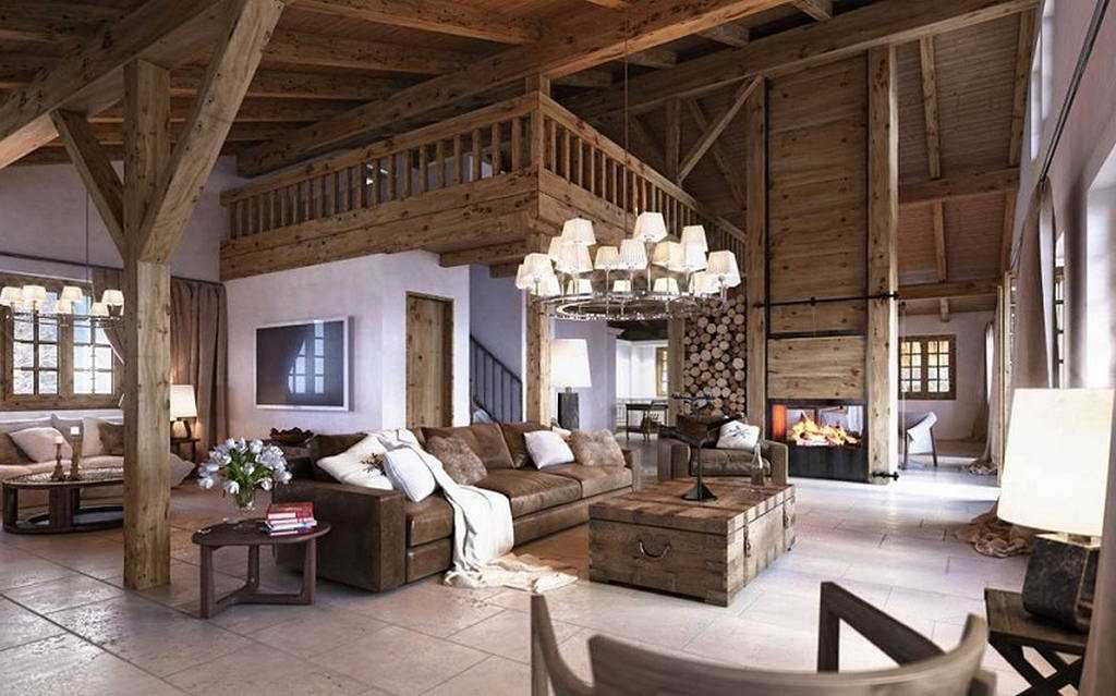 Лучшим вариантом оформления интерьера в стиле шале является создание атмосферы родового гнезда, пропитанного духом истории. Внутри дом должен быть максимально уютным и семейным. Бревенчатые и деревянные стены можно отделать штукатуркой или побелить, чтобы визуально увеличить пространство. Главной комнатой должна являться гостиная с большим камином и обилием мягкой мебели. Наполните ее семейными фотографиями, пледами и подушками, выполненными своими руками, милыми статуэтками и прочими деталями, создающими домашний уют.