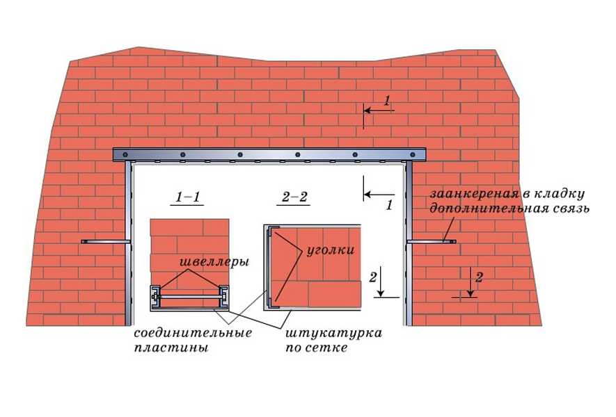 Схема усиления проема в несущей стене с подведением перемычки из швеллеров