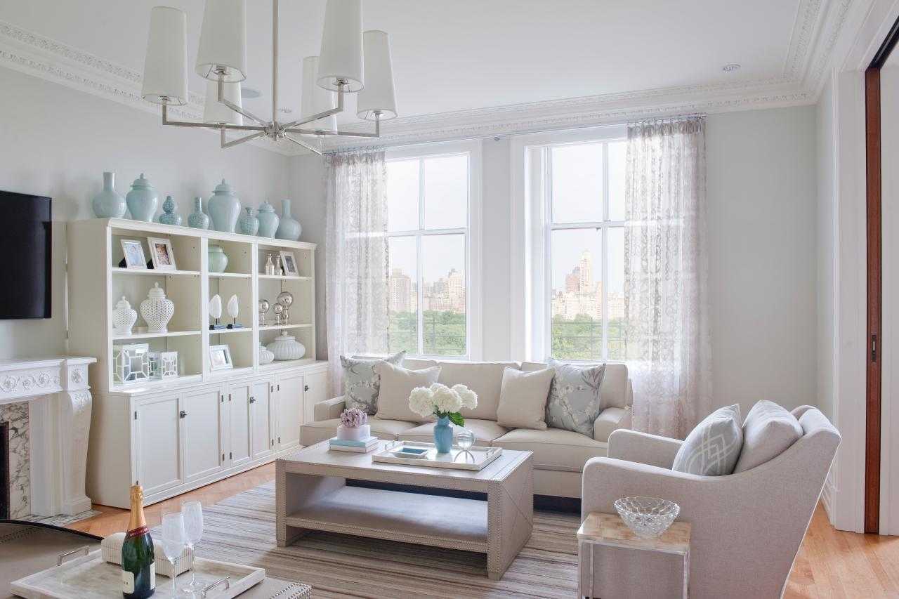 Снова вернемся к неоклассике, ведь для помещений со старой планировкой она может быть одним из лучших вариантов оформления. Легкая классическая мебель в современной интерпретации, элегантный, но сдержанный декор, нейтральная цветовая палитра с благородными оттенками, кессоны на потолке и прочее – все это лучшим образом отразиться на уникальном характерном пространстве квартир старого типа.