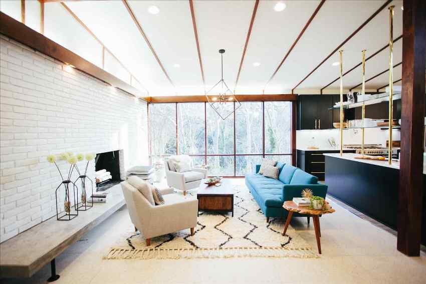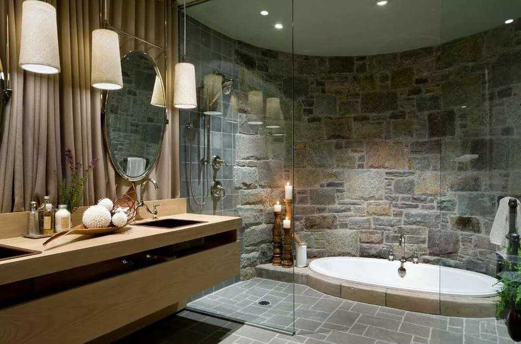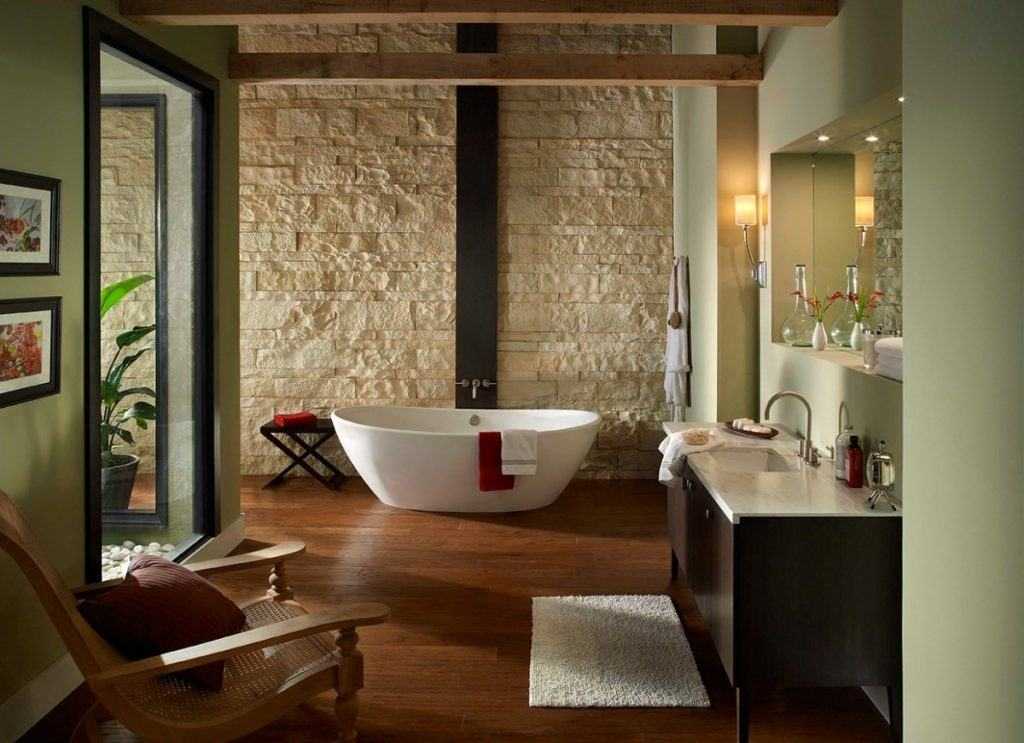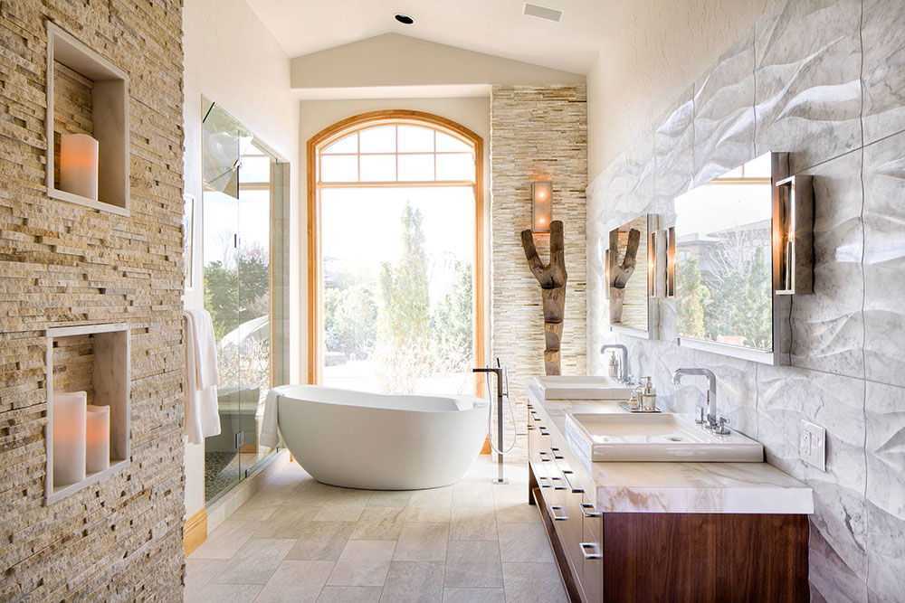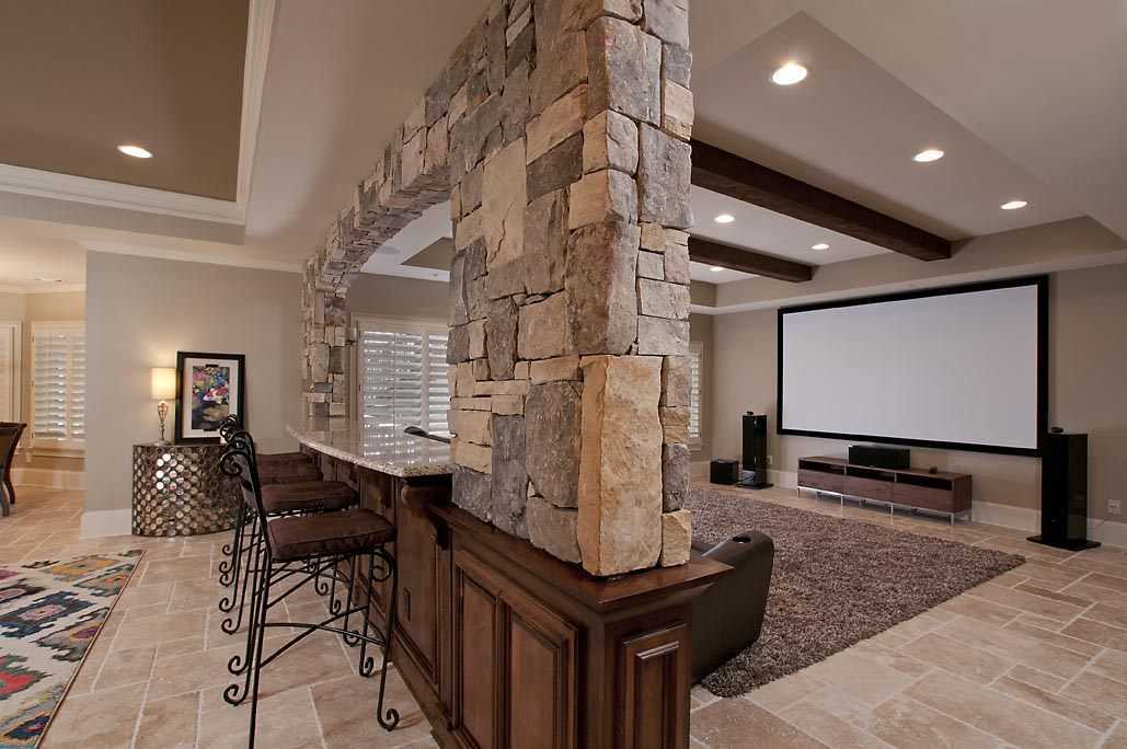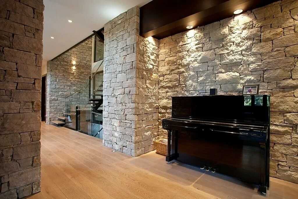 удачное сочетание камня с другими материалами. Каменная облицовка должна сочетаться с текстурой стен, потолка и пола. Также к камню гармонично должны быть подобраны двери, окна, плинтуса, мебель и аксессуары;