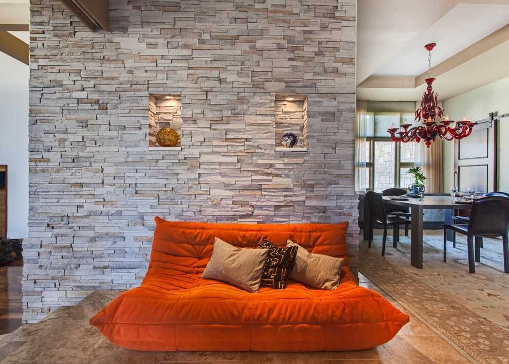 Стены из камня позволят сразу четко расставить акценты в интерьере и добавить комнате дороговизны