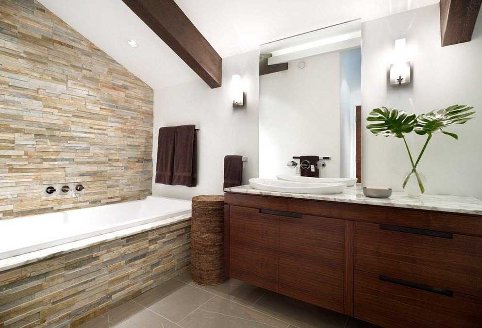 Натуральные материалы, дерево, камень, органично встраиваются в разноплановую стилистику. Декоративная искусственная плитка даёт возможность подобрать имитацию натуральных материалов по доступной цене. К примеру, натуральный шлифованный мрамор гораздо дороже керамогранитной плитки.
