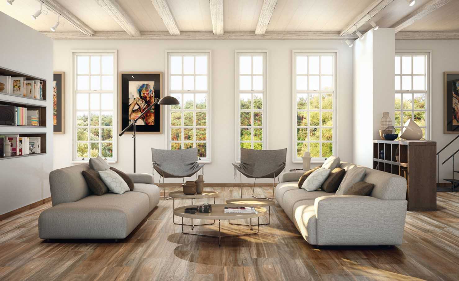 Напольная плитка в интерьере гостинойИсточник 3dplitka.ru