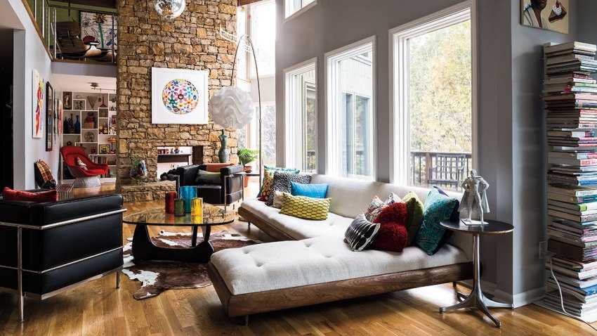 Смелое сочетание природных материалов и творческий подход к отделке позволят получить в итоге необычный и запоминающийся интерьер.