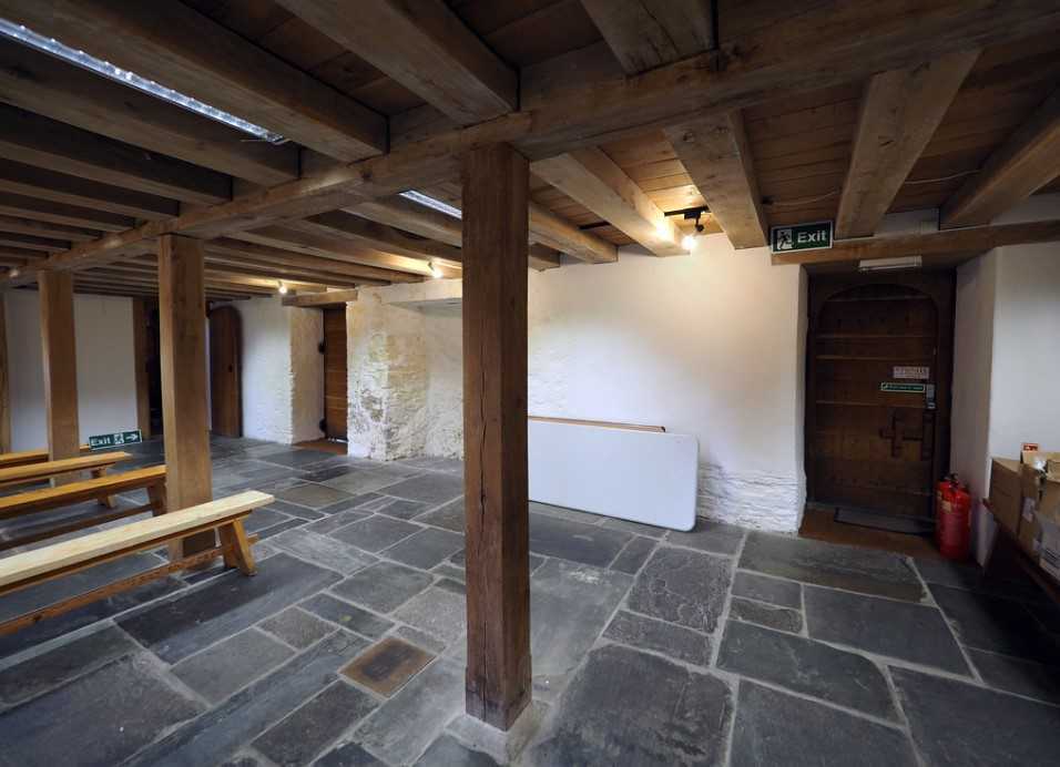 Кирпичная кладка на стенах сочетается с деревянным полом