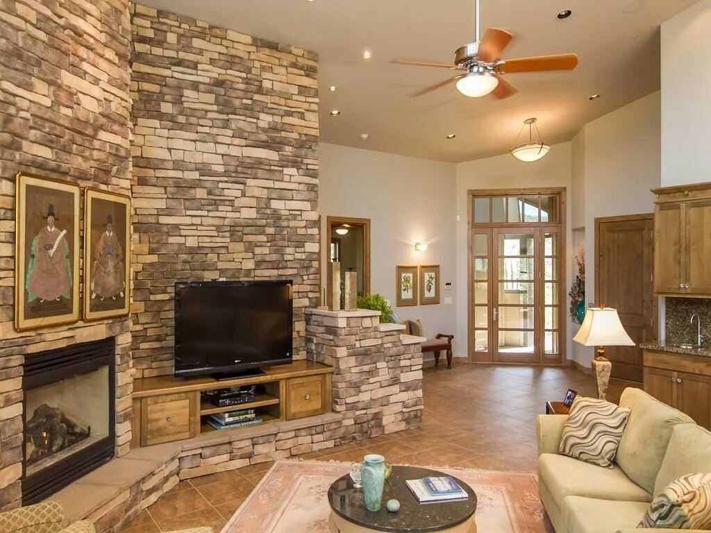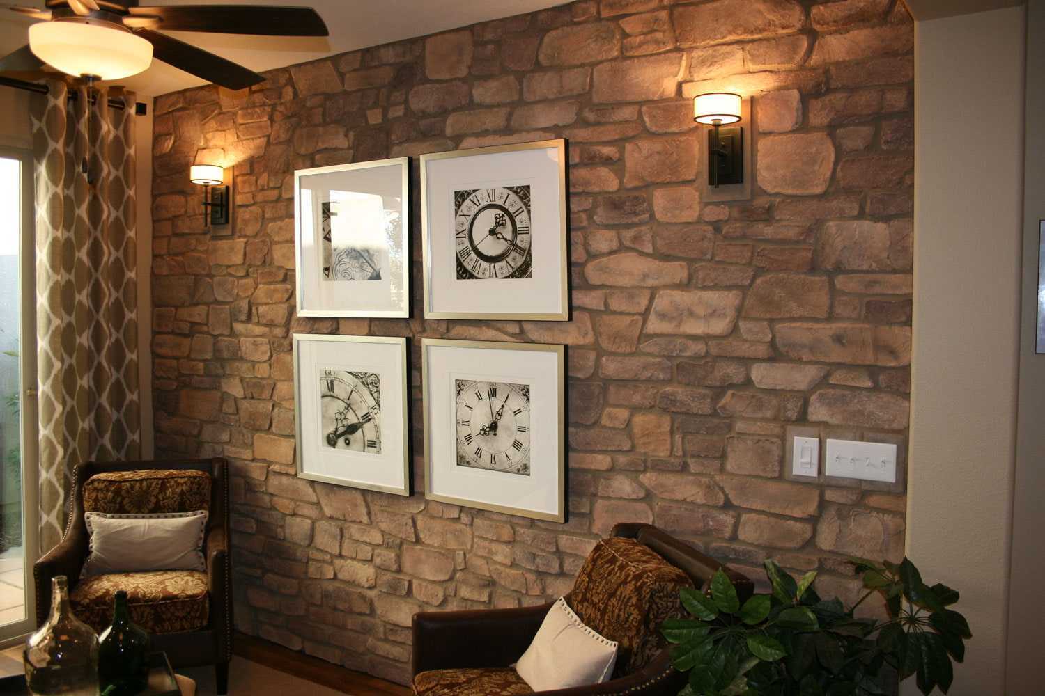 Прекрасно повторяющий структуру оригинала, его цвет, форму, размеры, искусственный камень находит применение в отделке любых помещений, в том числе и гостиной