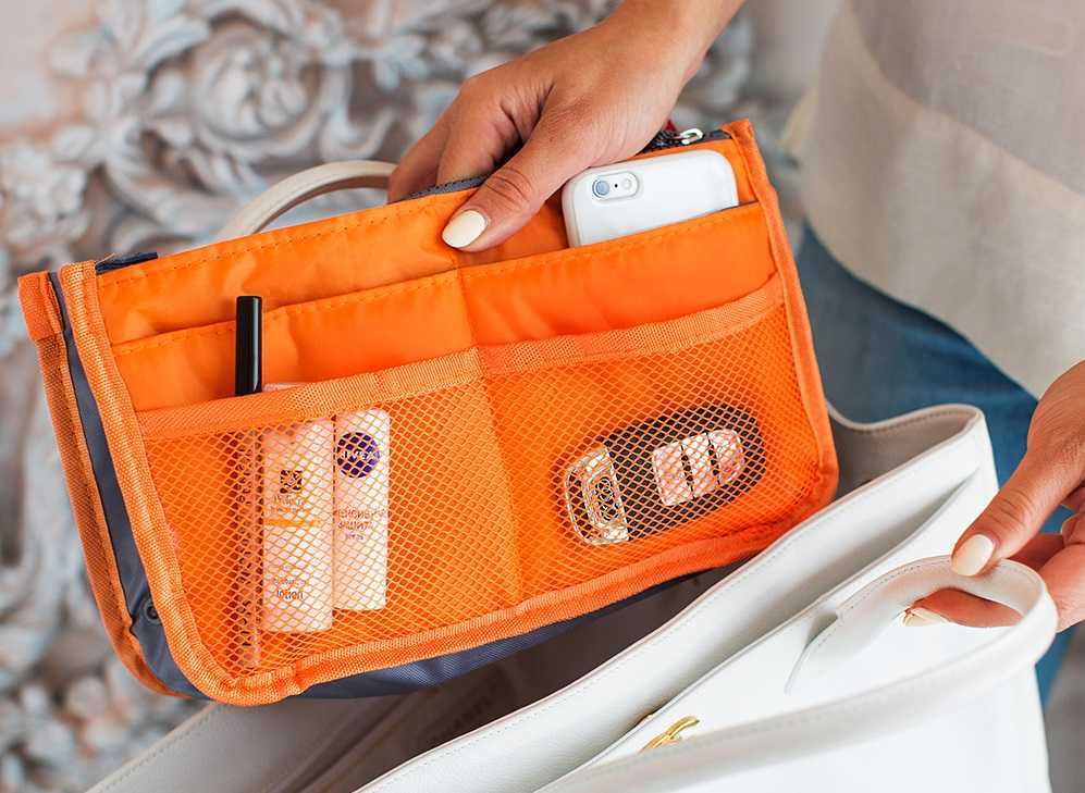 Органайзер можно охарактеризовать как вкладыш для сумки. На сегодняшний день встречаются различные его наименования: несессер, тинтамар, bag-in-bag, multi-bag, clever-bag (что в переводе с английского означает «сумка в сумке», «мультисумка», «умная сумка» соответственно). Такой аксессуар радует не только своим привлекательным дизайном, но и функциональностью. Достигается она благодаря тому, что органайзер состоит из довольно большого числа карманов или даже нескольких отделов. Преимущества его заключаются в следующем: