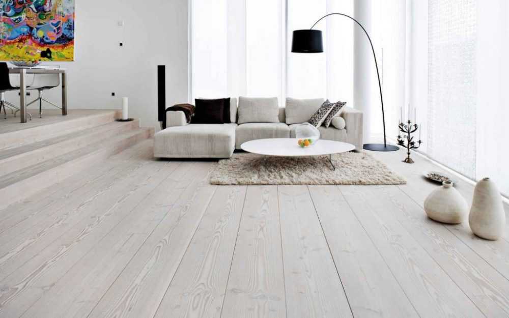Светлый цвет пола во многом будет зависеть от окружения. Если темный пол сам дарит свой оттенок рядом находящимся светлым вещам, то светлый будет впитывать в себя и оттенок теплоты освещения, и тона мебели, и цветовую гамму стен. В этом случае можно использовать лампы дневного света, избегая излишней перемены оттенка, желтизны пола.