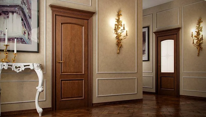 На некоторых моделях можно даже выложить плитку или декоративную штукатурку, а в классических интерьерах отдать предпочтение двери с филёнками, которые будут переходить со стены как её продолжение.