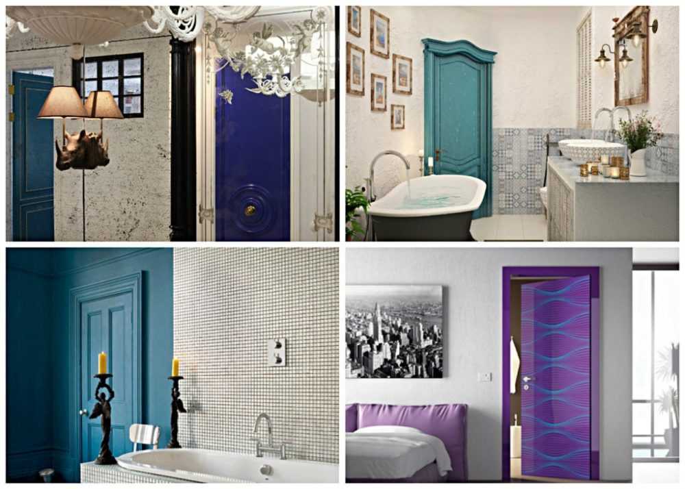 Например: тёмный пол + яркие стены + белые двери. Или: тёмные двери на фоне светлых стен и светлого пола. Или: яркие двери на фоне светлой или тёмной отделки. В последнем случае присутствие яркого оттенка в пространстве должны поддержать мебель или аксессуары.