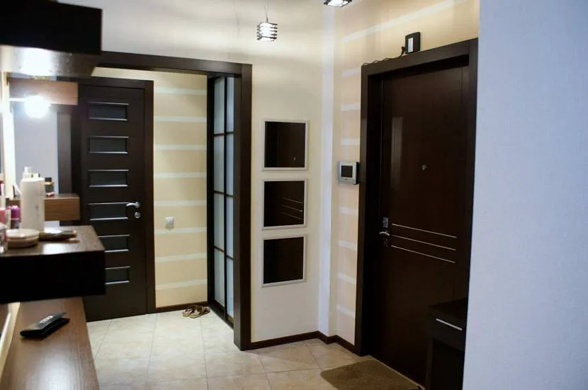Если в одну комнату, например, в прихожую, выходят несколько дверей, рекомендуется сделать их одного цвета и стиля, чтобы сохранить единство и стилистику помещения.