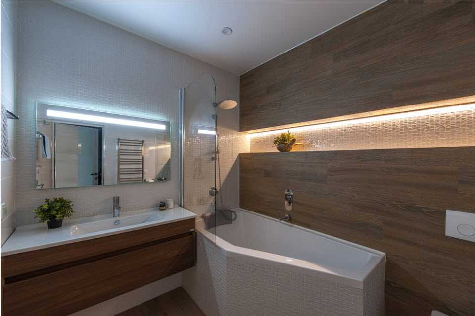 Все три типа освещения пола, потолка и стен ванной должны гармонировать и дополнять друг друга, создавая общую картину интерьера и мягко рассеивая свет. Вот несколько советов по созданию современной подсветки:
