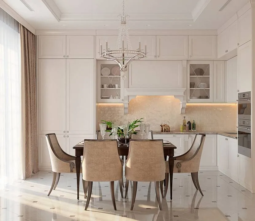 Кухня кремового цвета выглядит изыскано