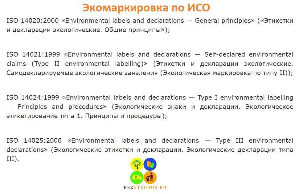 Порядок присвоения и принципы экомаркировки отражены в европейских стандартах iso 14020-2000 (14 021, 14 024, 14 025).