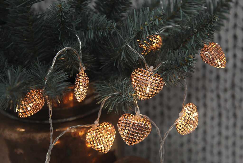 Гирлянда из сердец – романтичное оформление новогодней елки. Ее можно даже использовать для украшения квартиры на других праздниках или при организации ужина для влюбленных. Вместо нее можно вешать отдельные игрушки такой же формы, но не перегружать ими хвойное дерево.